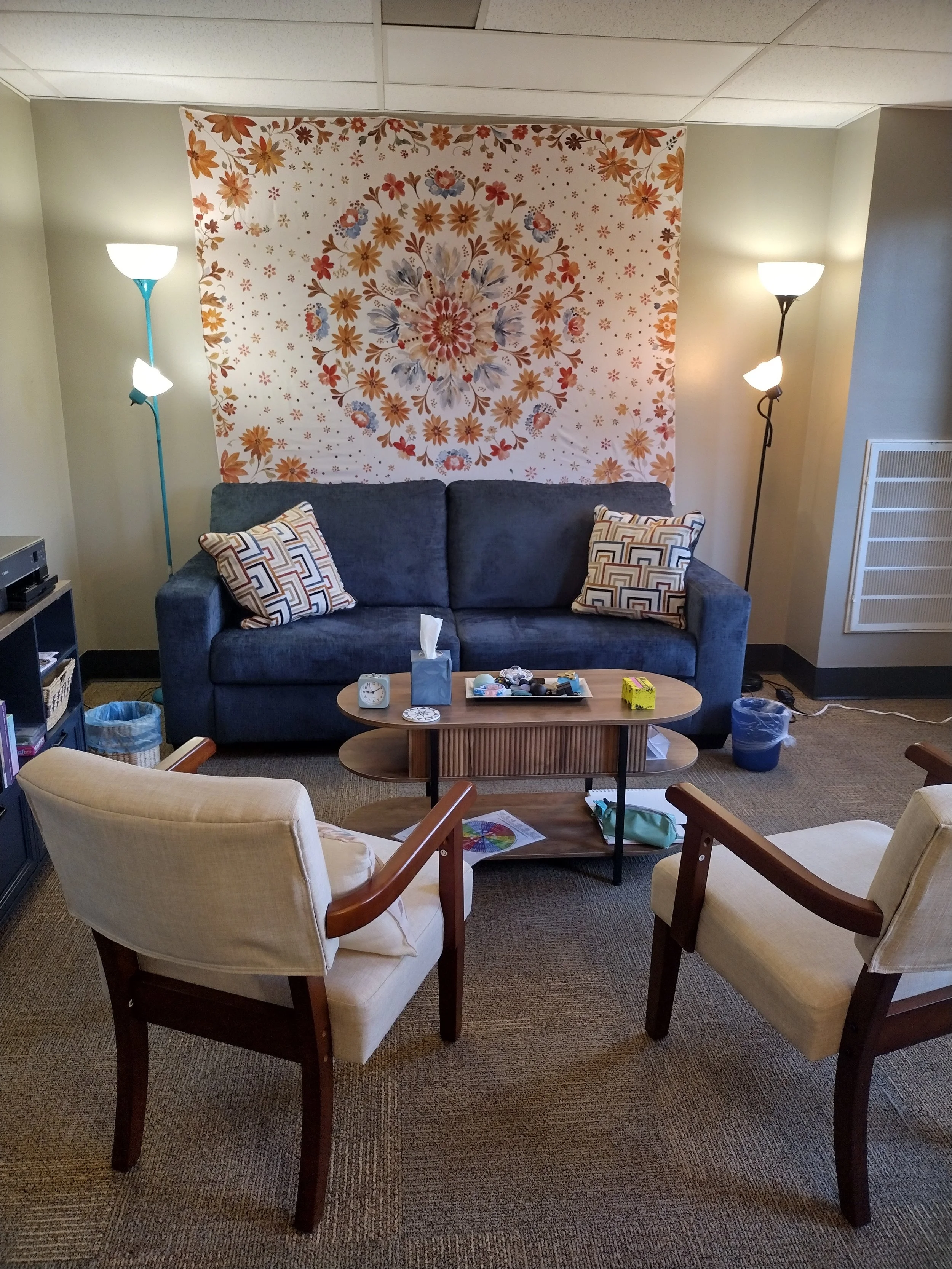 Your appointments will take place in my welcoming and comfortable office, which features a fully private room, complimentary tea, coffee, and water, as well as individualized care. The office is conveniently right off 1-225 and Iliff. I offer walk-and-talk and virtual sessions.